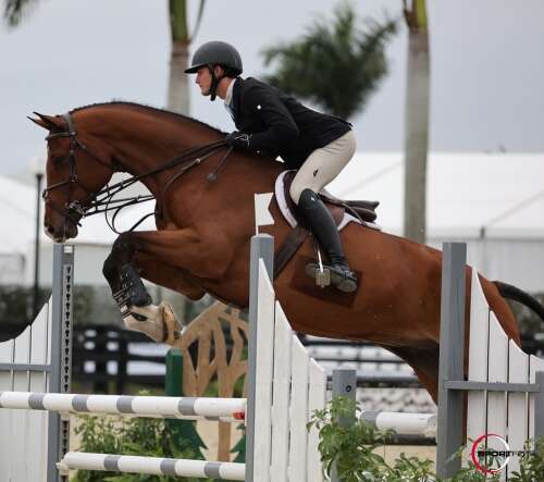 Riding the bay gelding Ironman, Rego manage…
